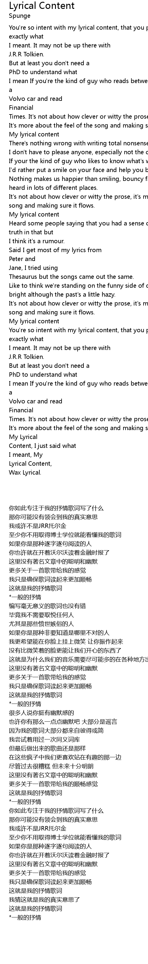 You're so intent with my lyrical content, that you probably don't realise exactly what |