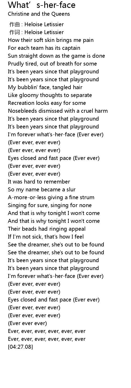 | [01:15.11] | I'm forever what's-her-face (Ever ever) |