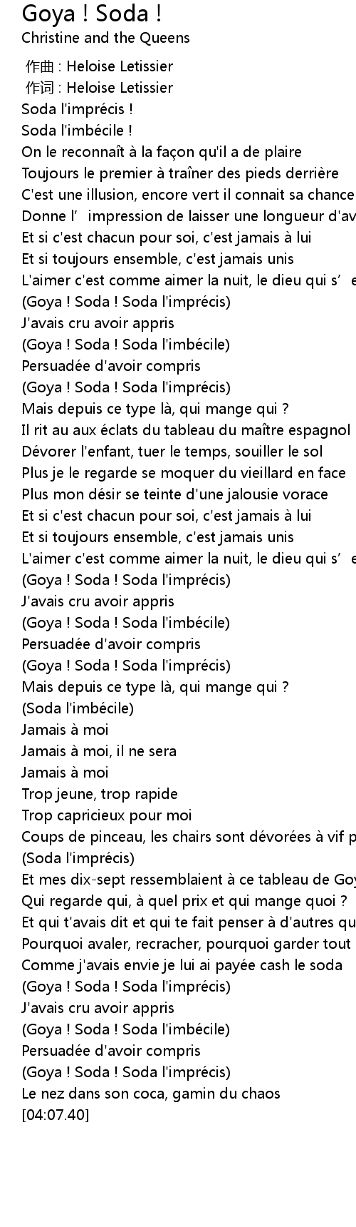 | [01:19.81] | Goya ! Soda ! Soda l' impre cis |
