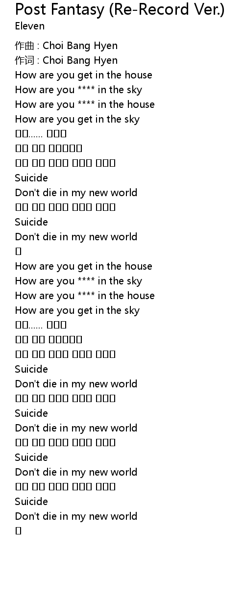 | 作词 : Choi Bang Hyen | |