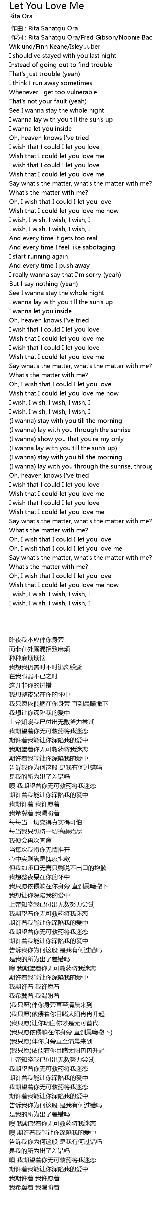 | [00:01.000] | zuò cí : Rita Sahat iu Ora Fred Gibson Noonie Bao Linus Wiklund Finn Keane Isley Juber |