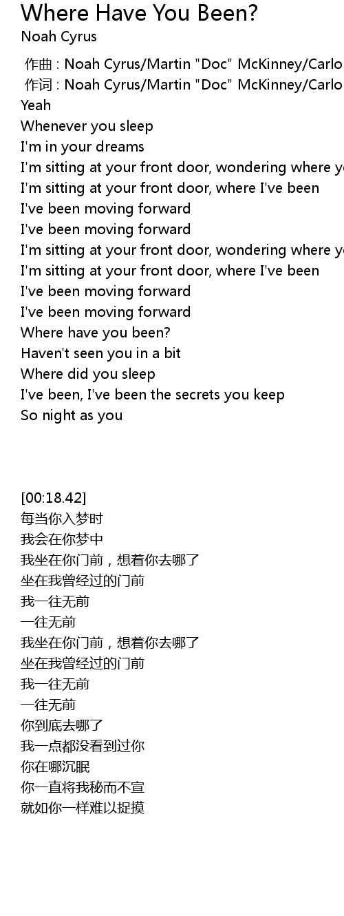 | [00:00.000] | zuo qu : Noah Cyrus Martin " Doc" McKinney Carlo Montagnese |