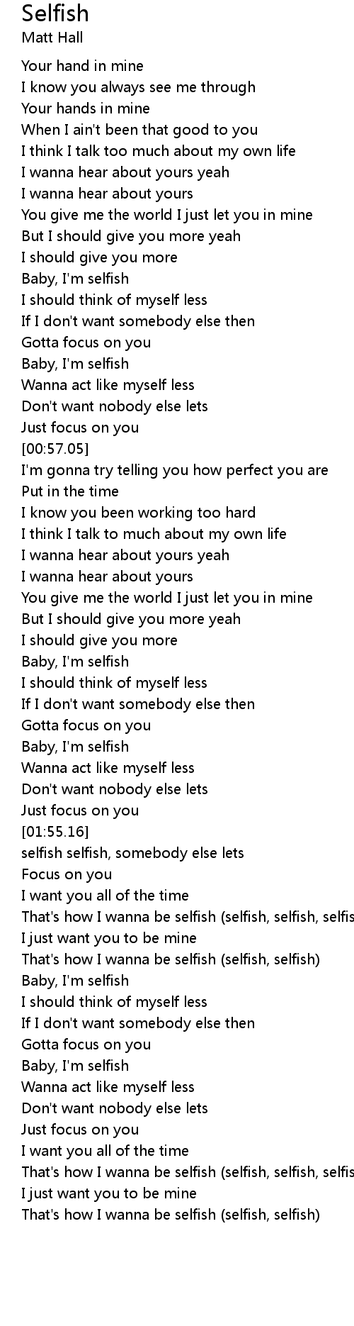 | [02:27.58] | That's how I wanna be selfish (selfish, selfish) |