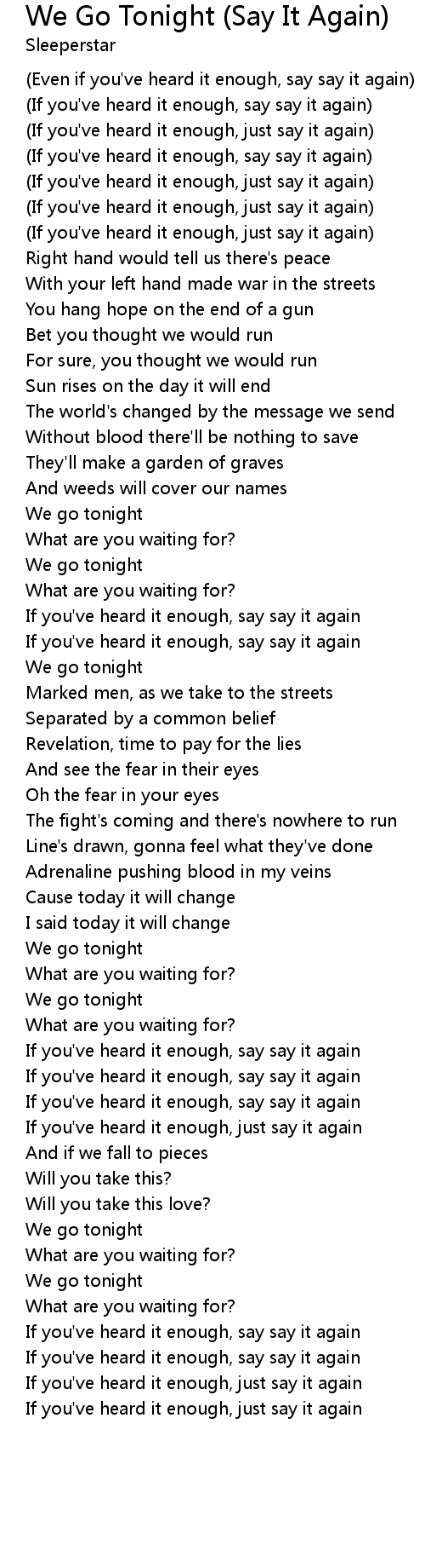 (If you've heard it enough, say say it again) |