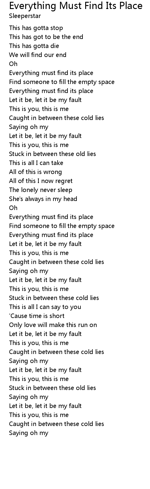 Everything must find its place |