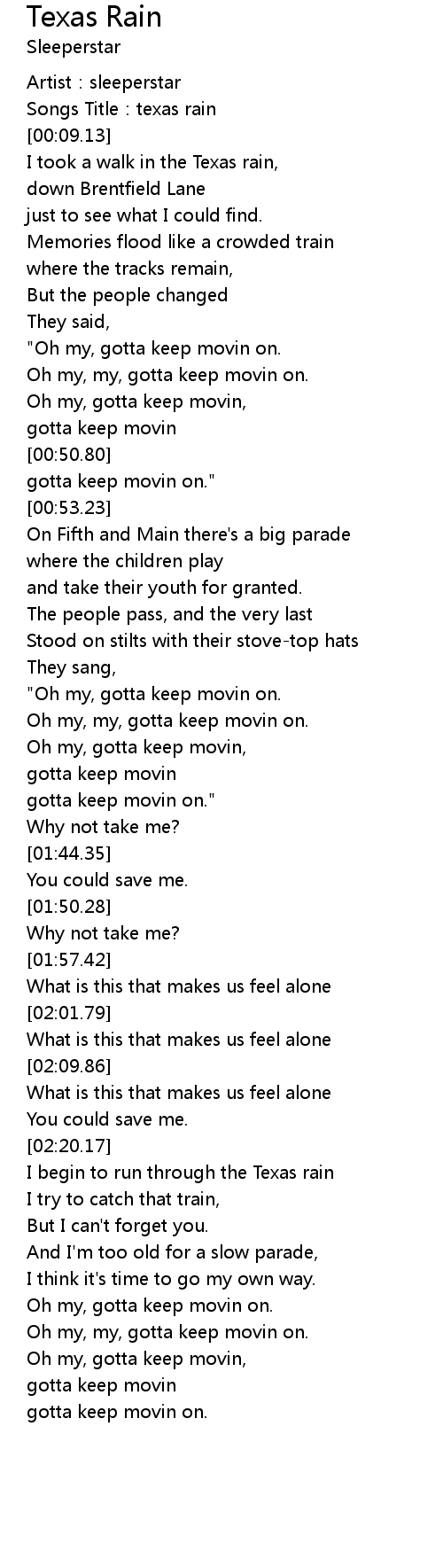 | [00:03.87] | Songs Title: texas rain |