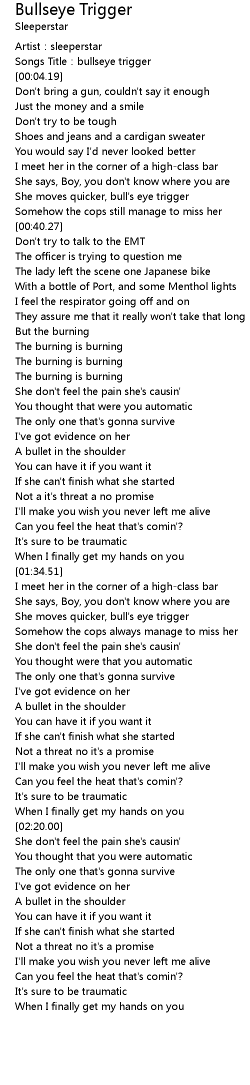 | [00:01.82] | Songs Title:bullseye trigger |