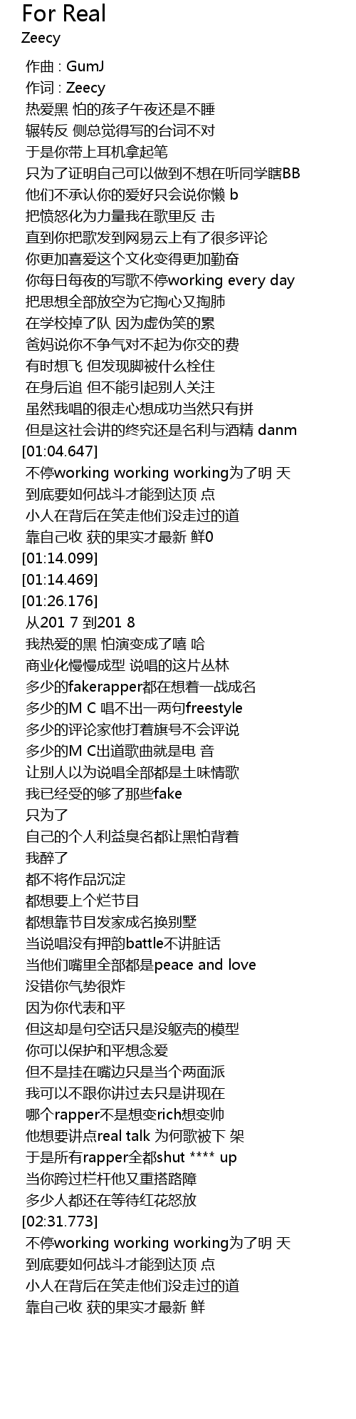| [01:37.345] | duo shao de M C chang bu chu yi liang ju freestyle |