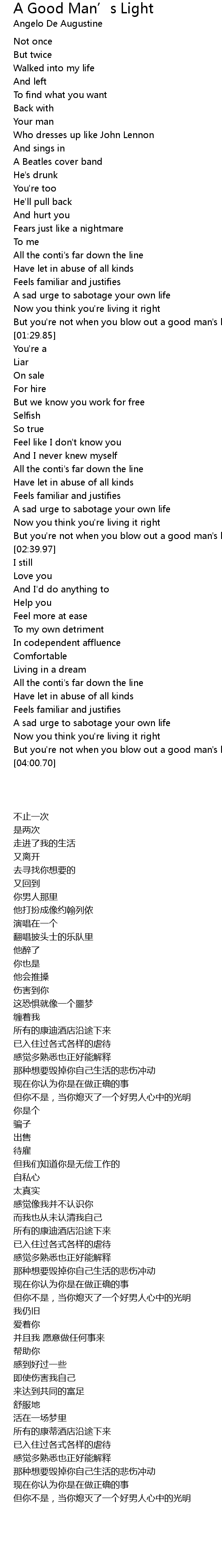 But you're not when you blow out a good man's light |