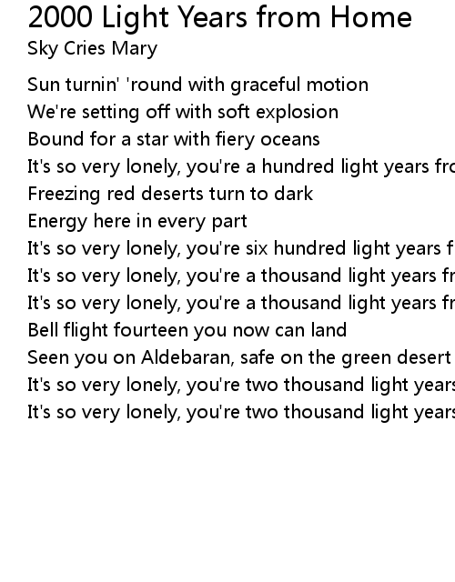 It's so very lonely, you're six hundred light years from home |