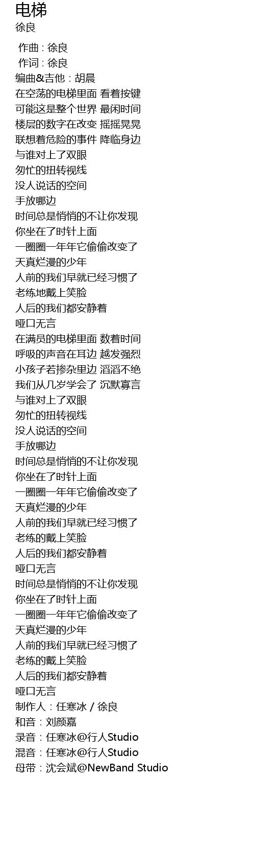 | [03:40.80] | 录音:任寒冰@行人Studio |