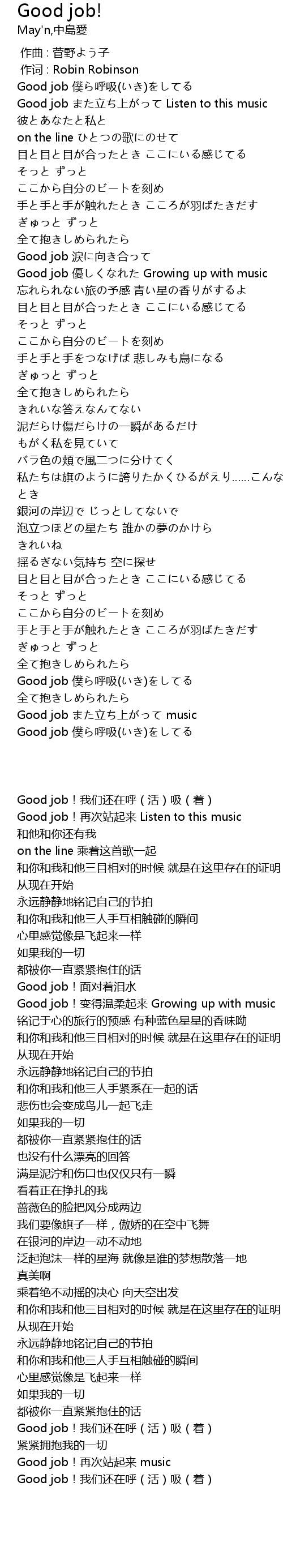 | [03:53.38] | Good job 僕ら呼吸(いき)をしてる |