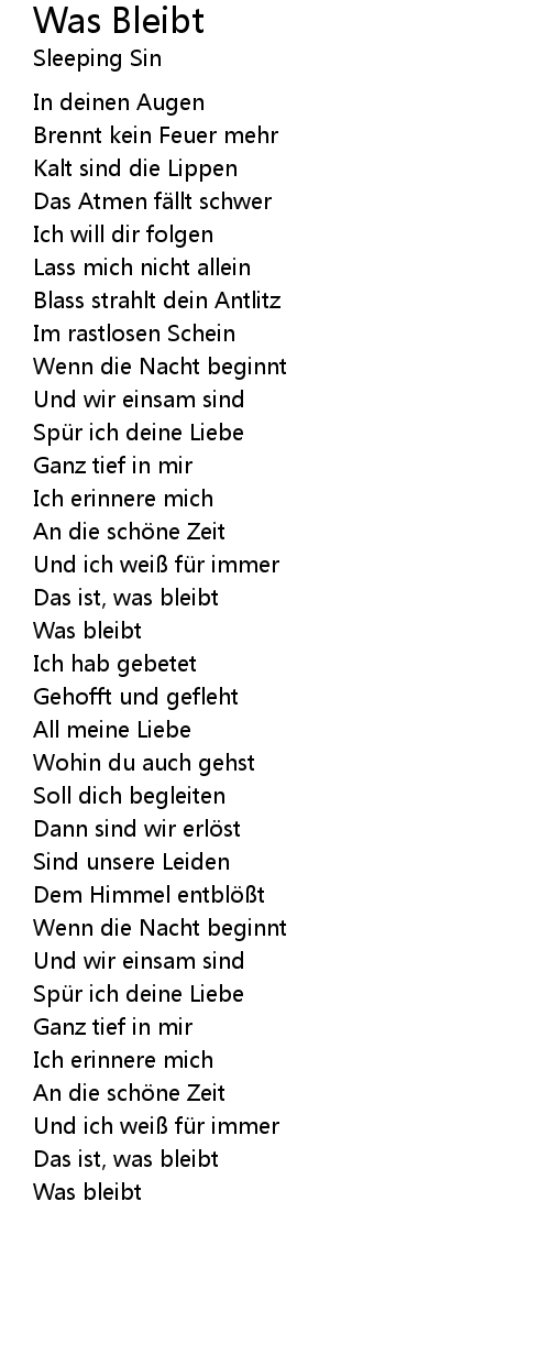 | Song | Was Bleibt |