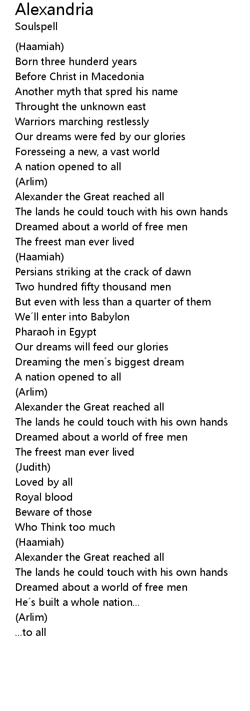 | Song | Alexandria |