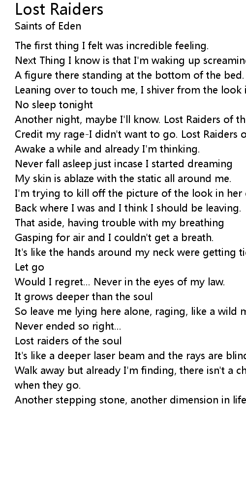 Credit my rage-I didn't want to go. Lost Raiders of the soul |