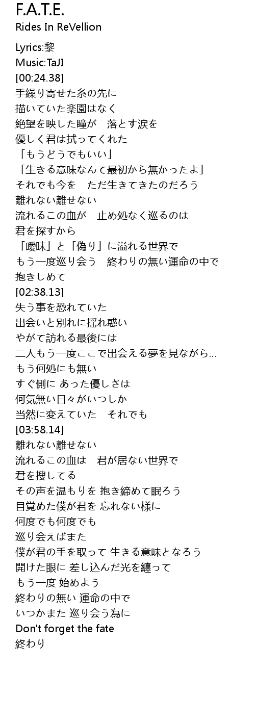 | [02:26.43] | もう一度巡り会う 終わりの無い運命の中で |