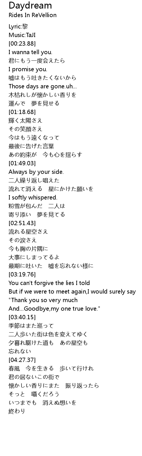 | [03:10.12] | 最期に吐いた 嘘を忘れない様に |