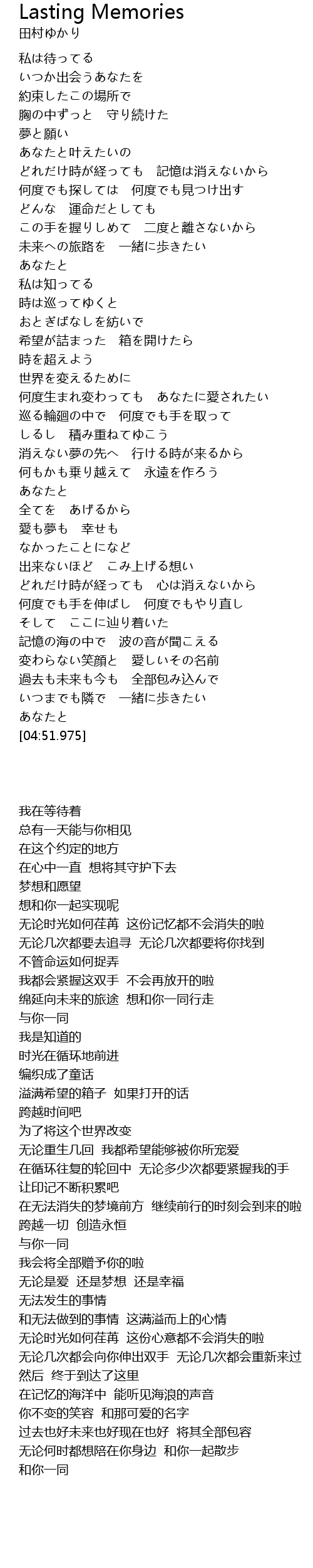 | [04:28.729] | 変わらない笑顔と 愛しいその名前 |