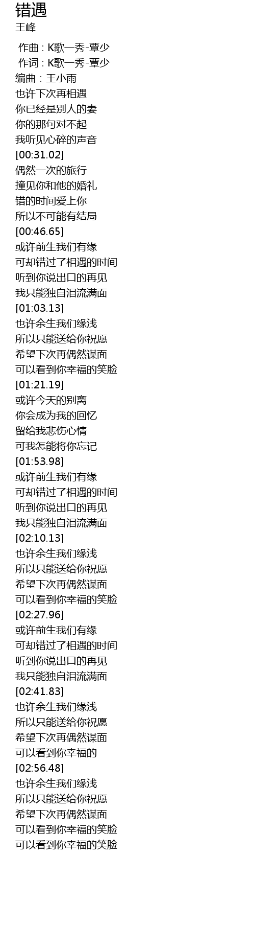 | [02:31.75] | kě què cuò guò le xiāng yù de shí jiān |