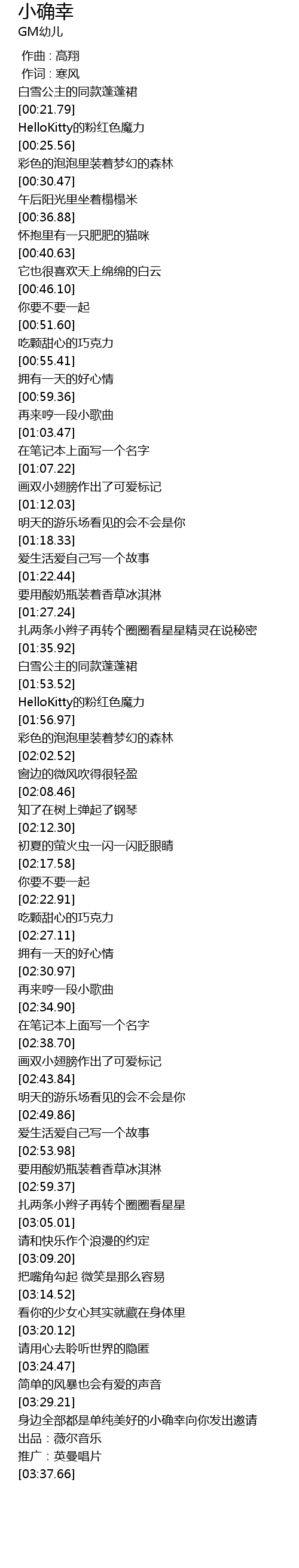 | [03:00.27] | 扎两条小辫子再转个圈圈看星星 |
