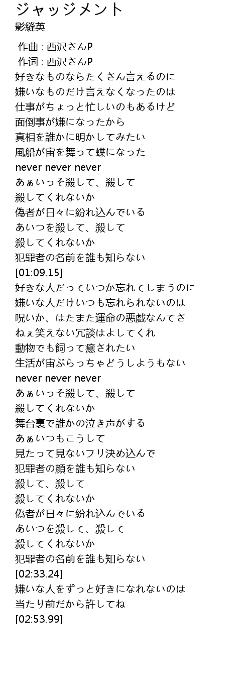 | [02:25.92] | 犯罪者の名前を誰も知らない |