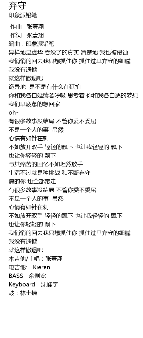 | [04:22.94] | 木吉他/主唱:张壹翔 |