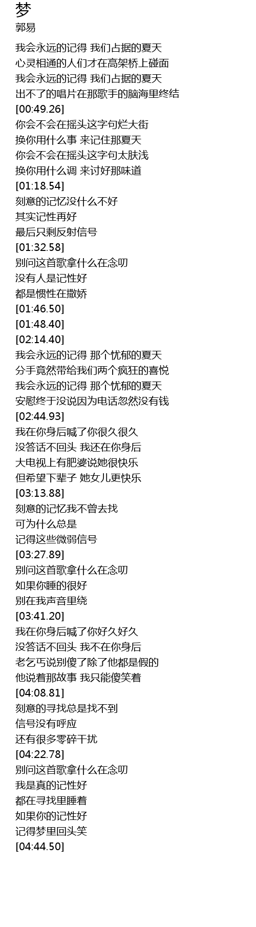 | [02:16.74] | 我会永远的记得 那个忧郁的夏天 |