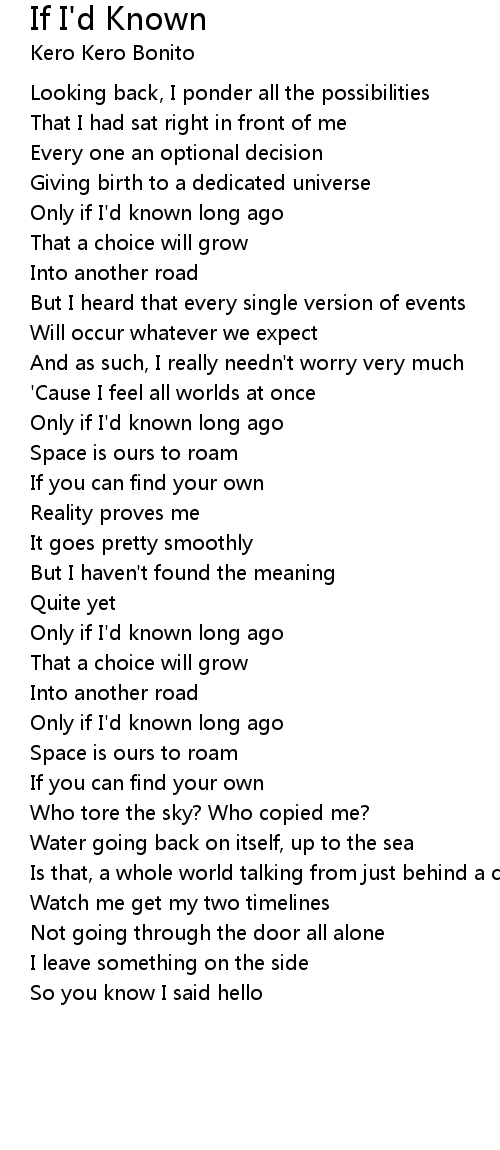 Only if I'd known long ago |
