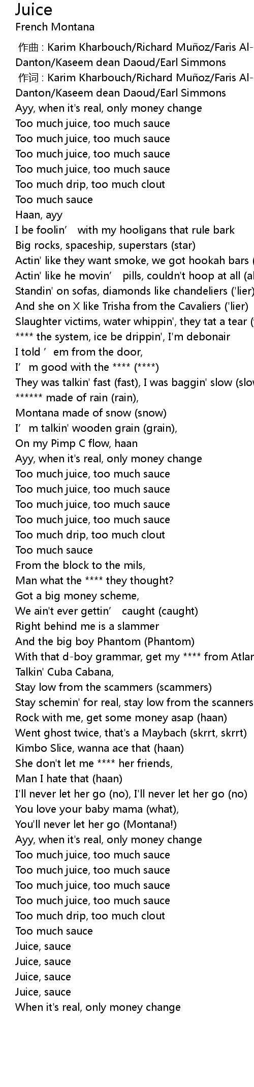 | [00:50.99] | They was talkin' fast (fast), I was baggin' slow (slow) |