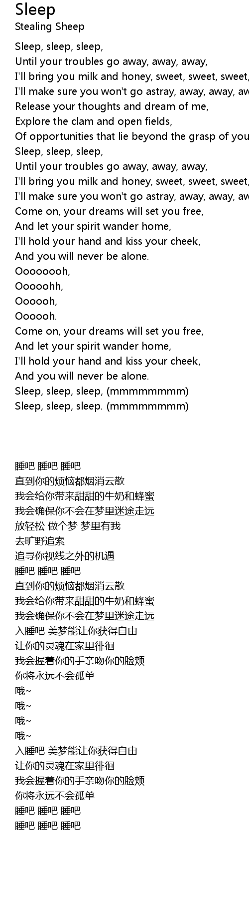 Sleep, sleep, sleep, |