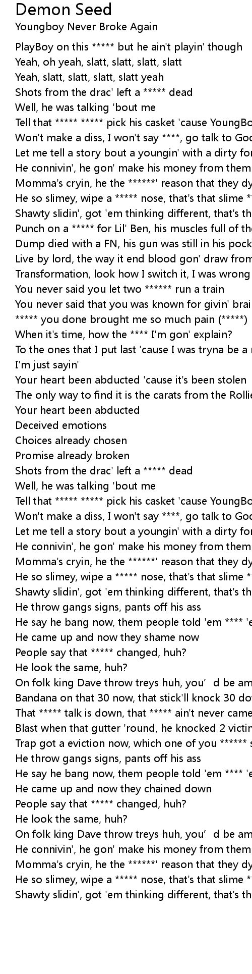 | [00:17.71] | Tell that ***** ***** pick his casket 'cause YoungBoy about it |