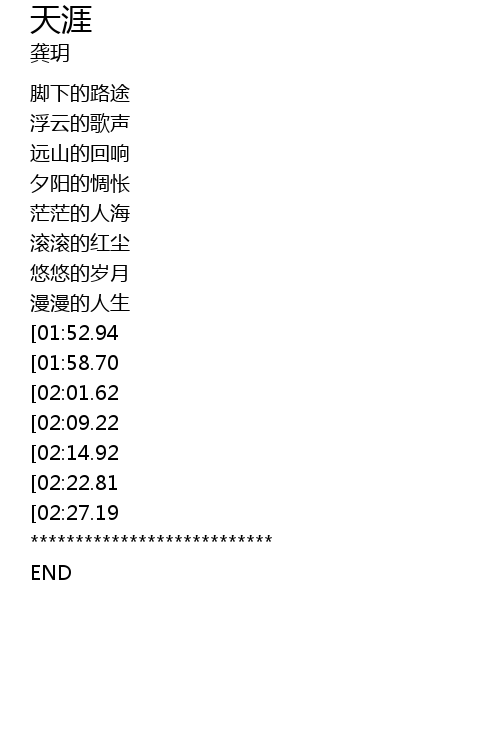 | [03:24.53][02:27.19] | 天涯 我最后的家 |