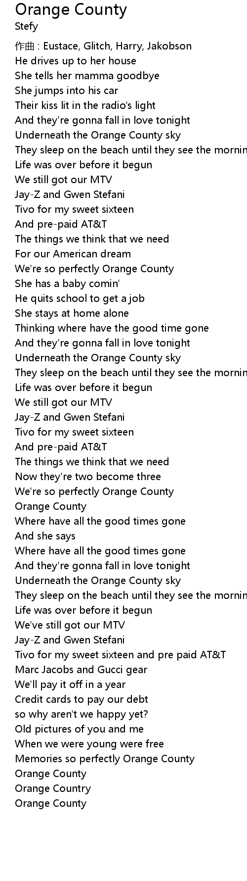 | Song | Orange County |