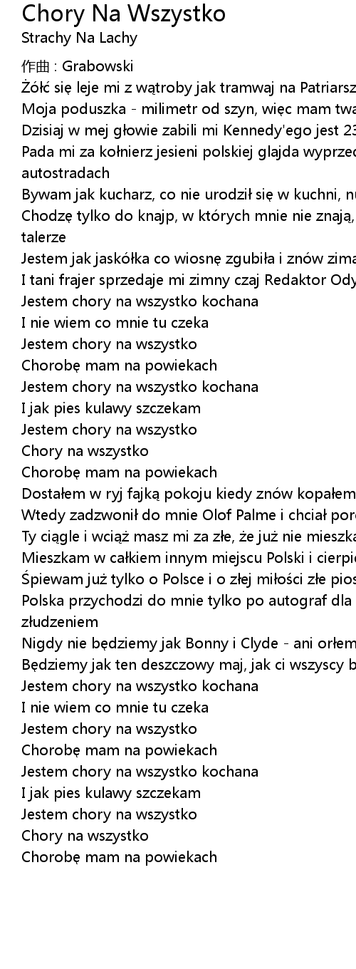 | Song | Chory Na Wszystko |