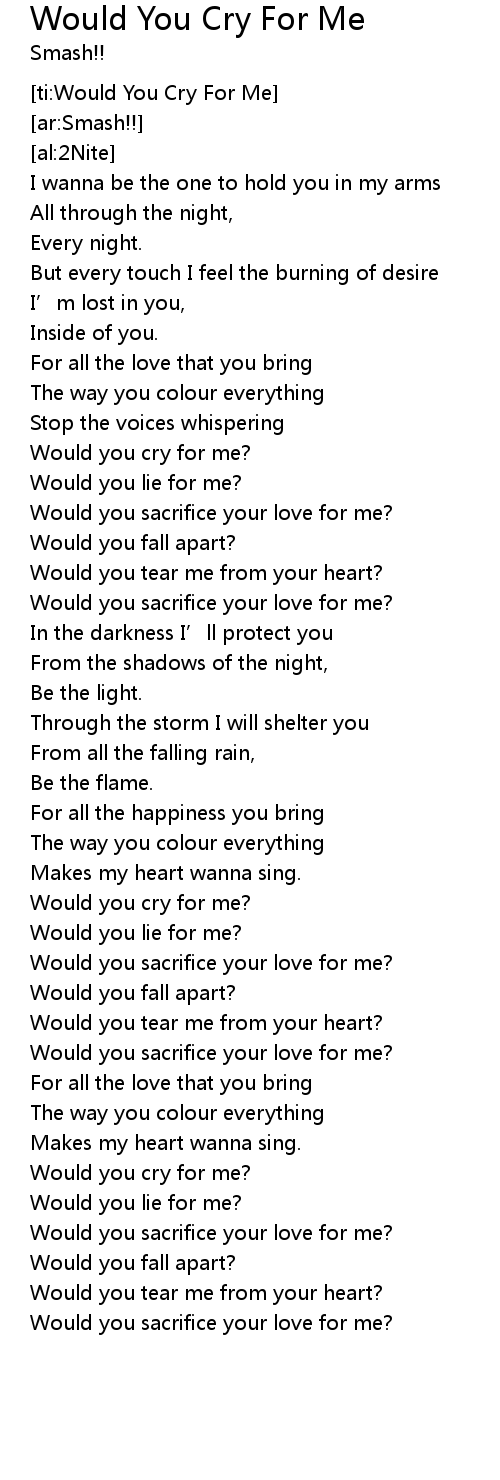 | [ti:Would You Cry For Me] | |