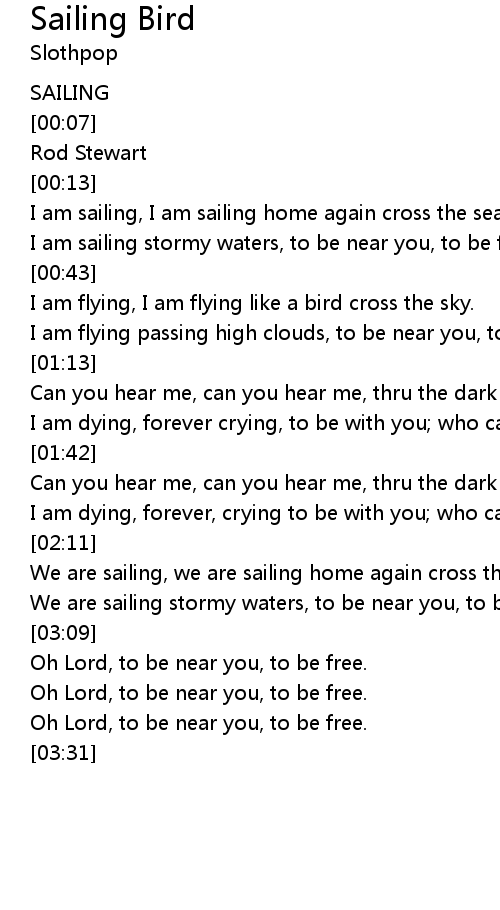 | [02:43] | We are sailing, we are sailing home again cross the sea. |