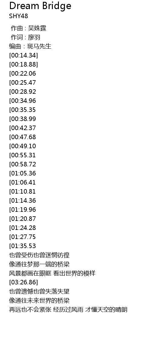 | [02:36.92][01:10.81] | 像通往梦那一端的桥梁 |