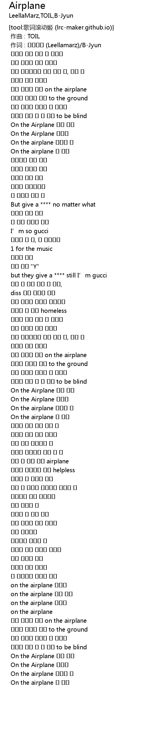 | [02:56.796] | On the airplane 날 위해 |