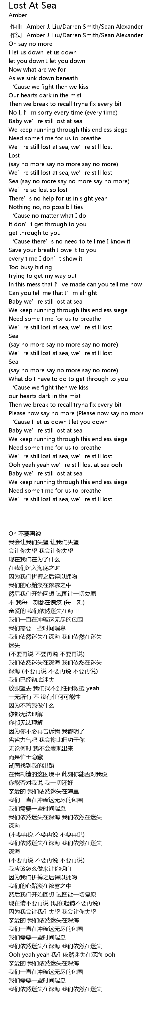 | [00:01.000] | zuò cí : Amber J. Liu Darren Smith Sean Alexander |