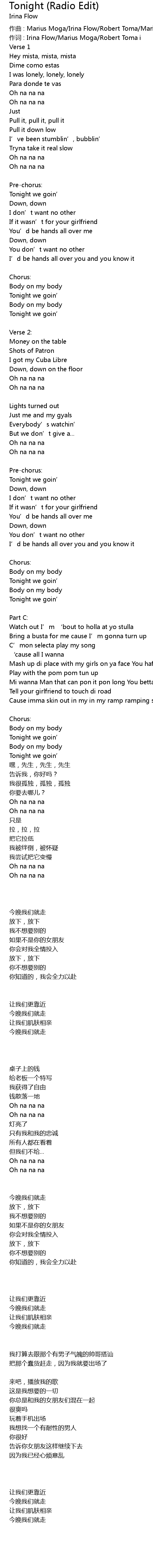 | 作词 : Irina Flow/Marius Moga/Robert Toma i | |