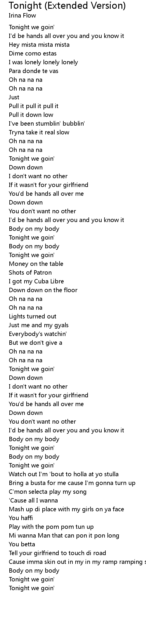 Tonight we goin' |