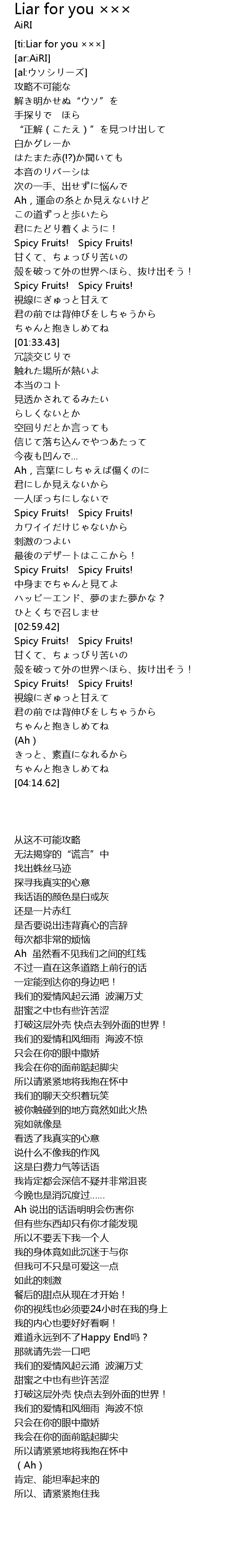 | [03:33.62] | Spicy Fruits! Spicy Fruits! |