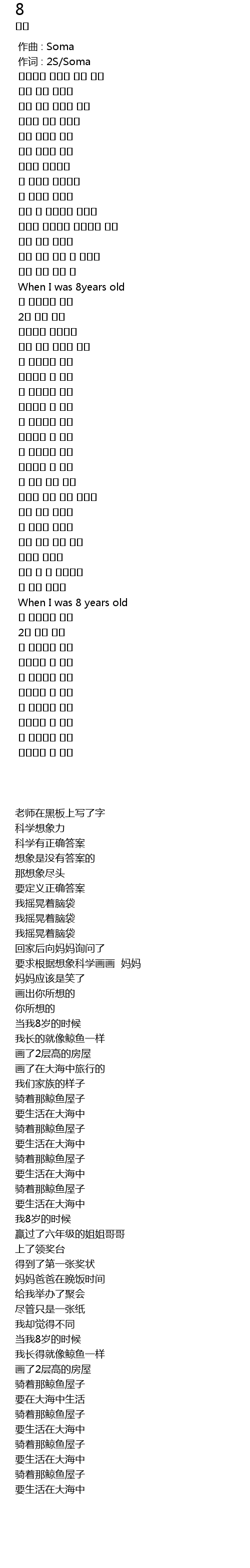作词 : 2S/Soma |