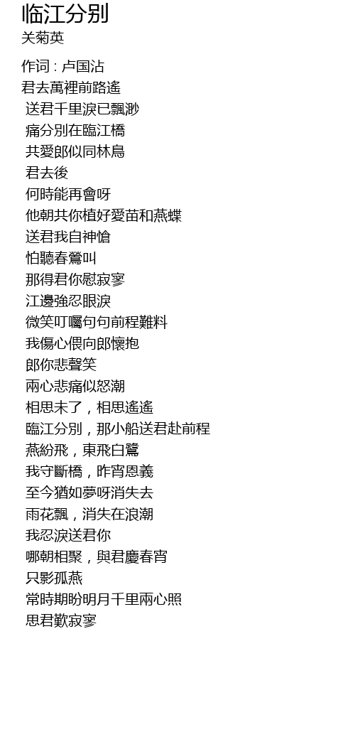 | sòng jūn qiān lǐ lèi yǐ piāo miǎo | |