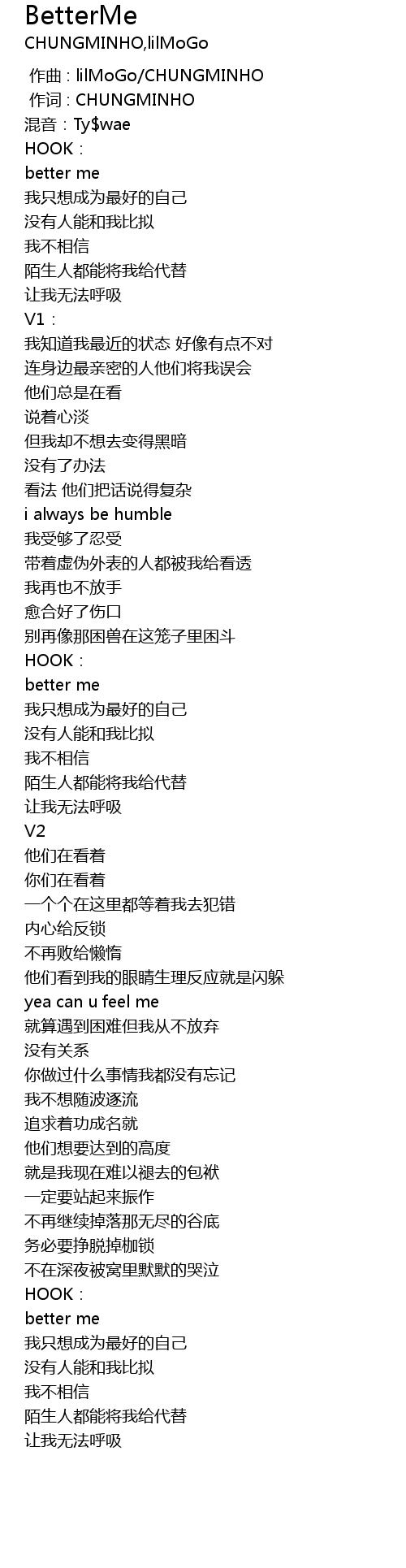 | [00:01.000] | 作词 : CHUNGMINHO |