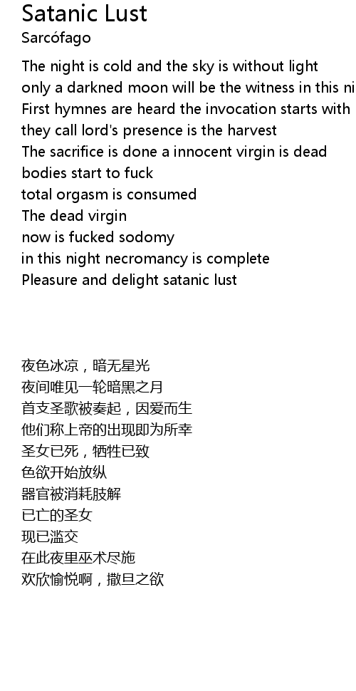 | [01:30.75] | Pleasure and delight satanic lust |