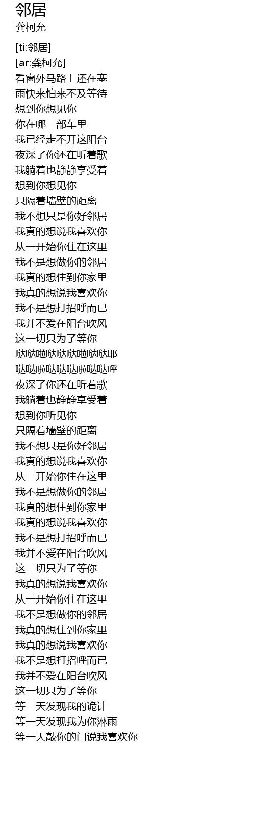 | [04:06.221] | 等一天敲你的门说我喜欢你 |