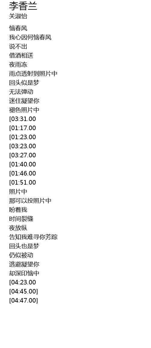 | [04:35.00][03:27.00][01:33.00] | kě xī wǒ tīng bù dǒng |