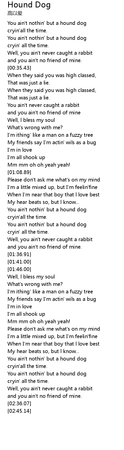 | [00:17.64] | You ain't nothin' but a hound dog |