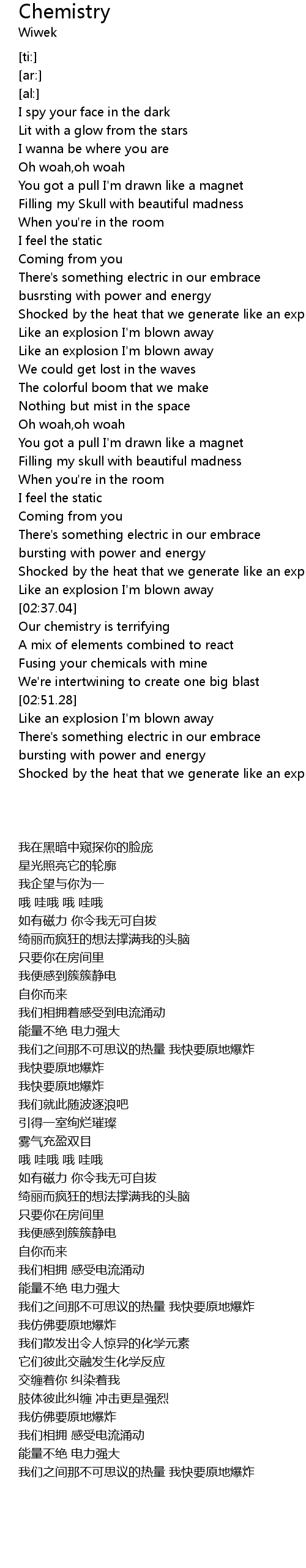 | [00:53.94] | Shocked by the heat that we generate like an explosió n I' m blow away |